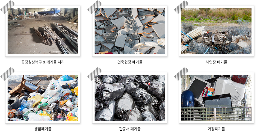 상가, 학원, 병원, 사무실, 공장, 관공서 등 각종 사업장에서 발생하는 폐기물 처리 전문